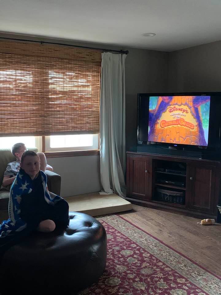 Adam went into Disney Plus and found Chip and Dale Rescue Rangers and then Gummy Bears to show the kids. Yes…we are getting desperate!!! Bringing 1985 back!!