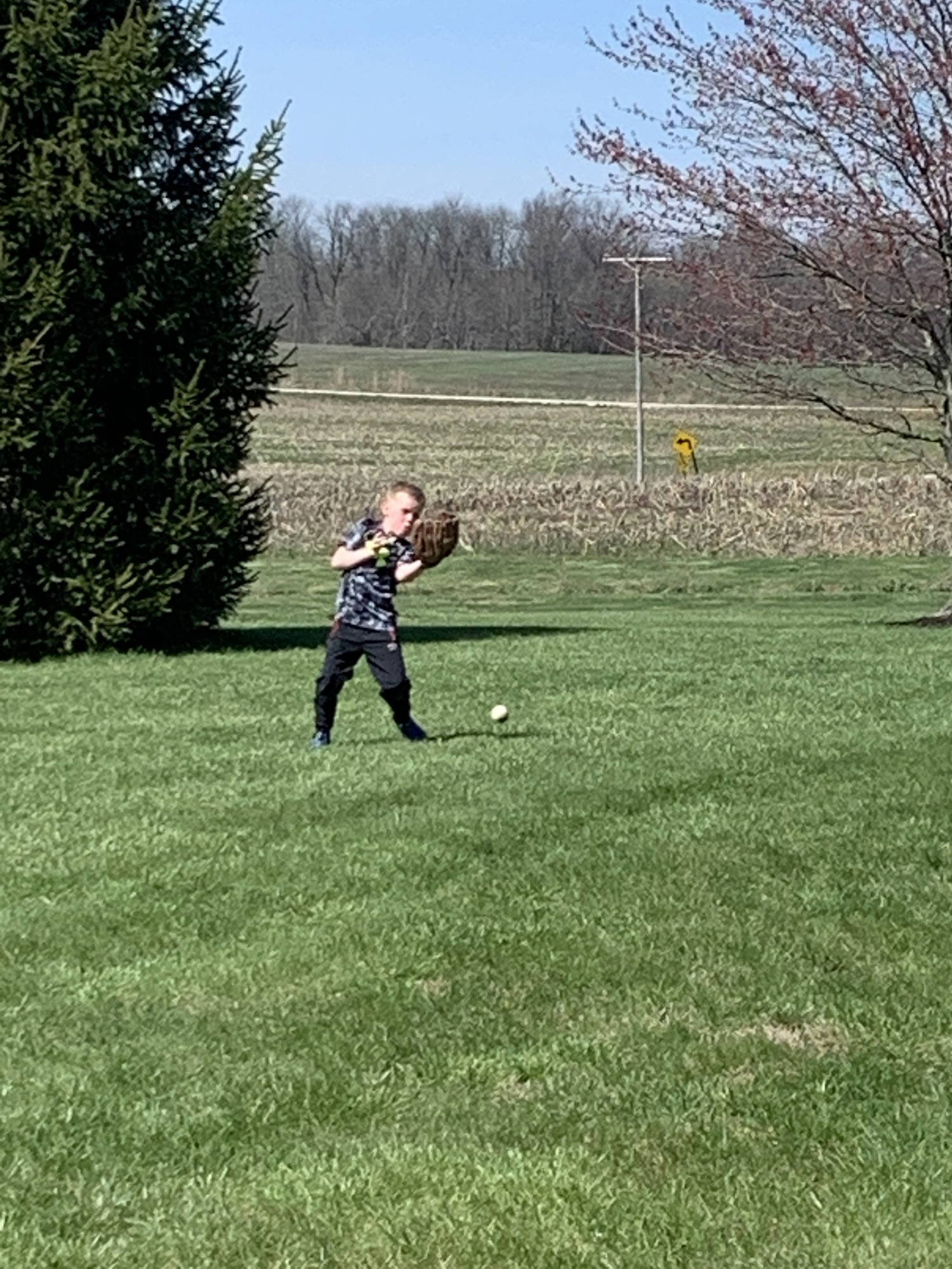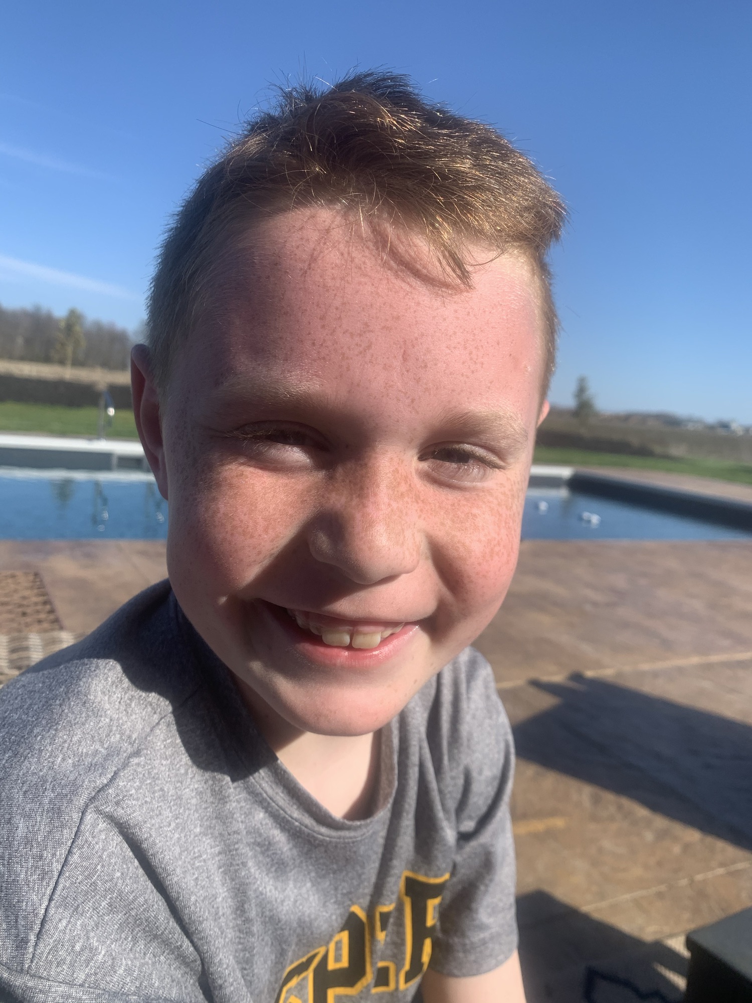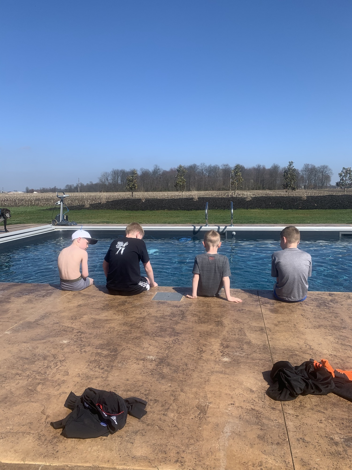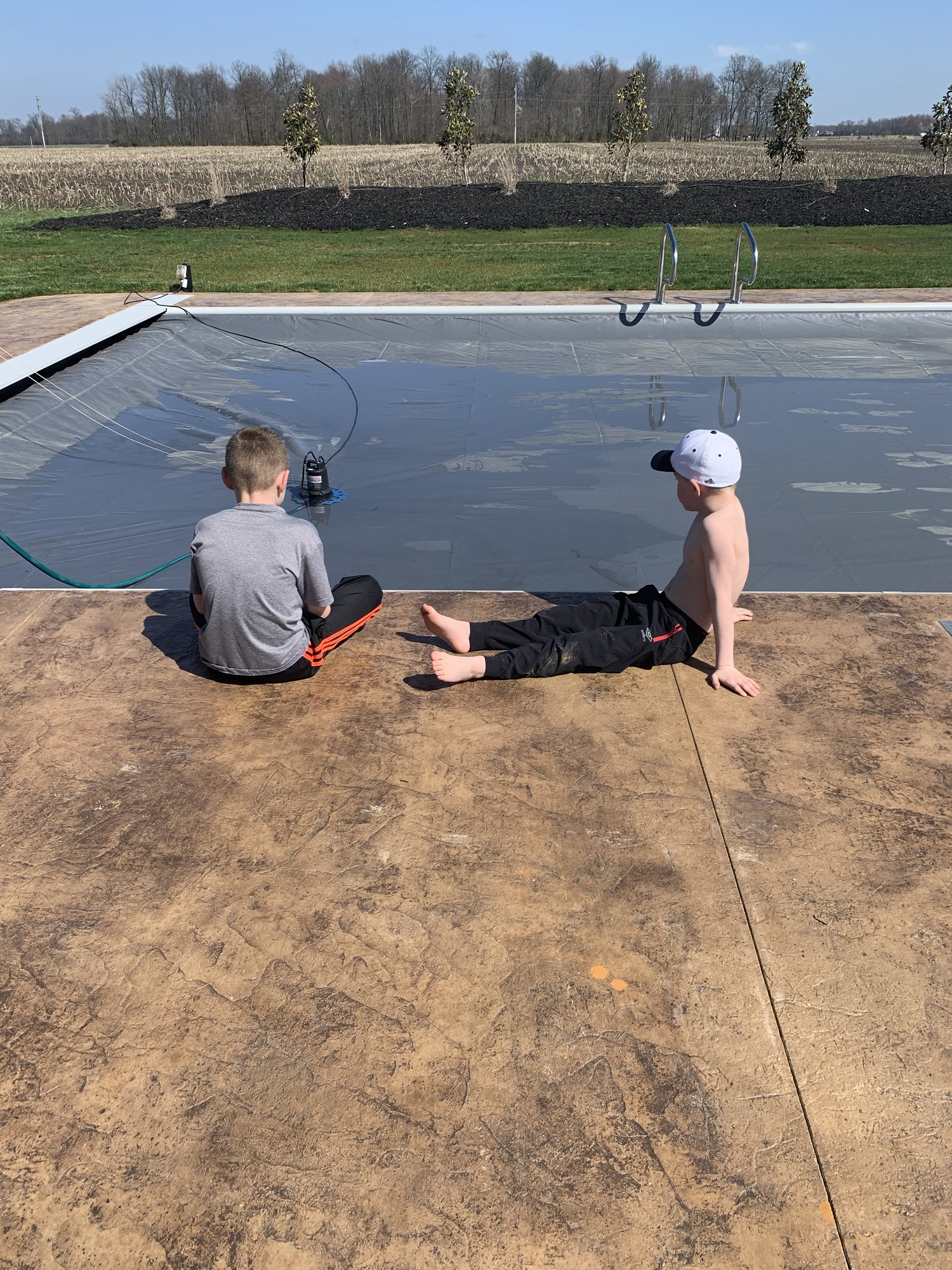 Went outside to enjoy the last sunlight of the day. Owen hit baseballs and one landed on the pool cover, we made Dawson grab it, he’s the smallest. He giggled the whole time…