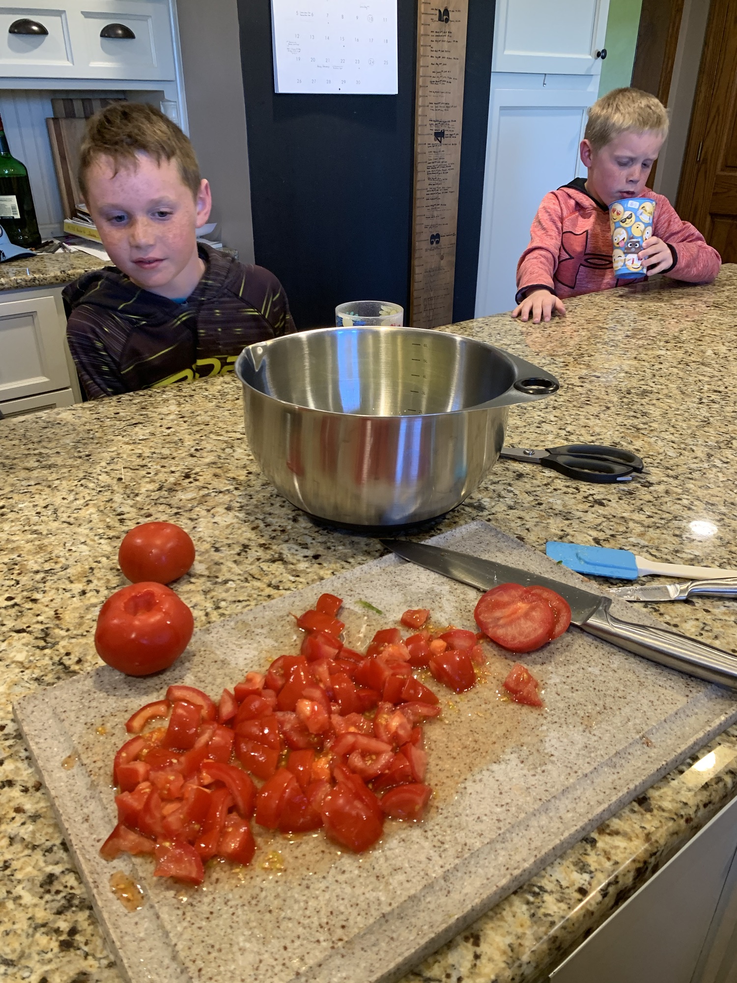 Finished dinner and kids showered. Corbin came downstairs 2 minutes after going upstairs and Adam asked him if he actually used soap. Corbin said no…we sent him back upstairs…I mean showering without soap is just getting wet…