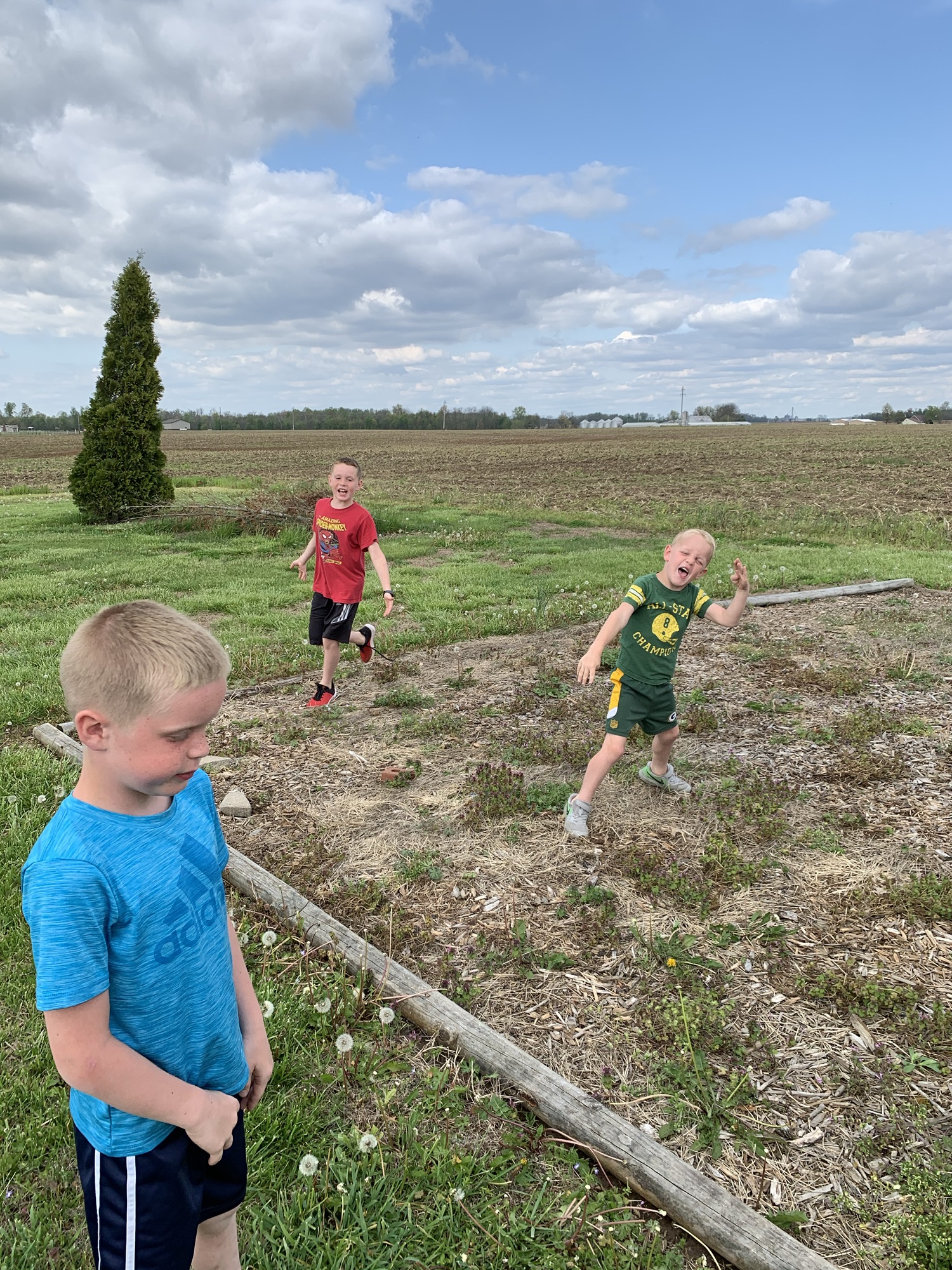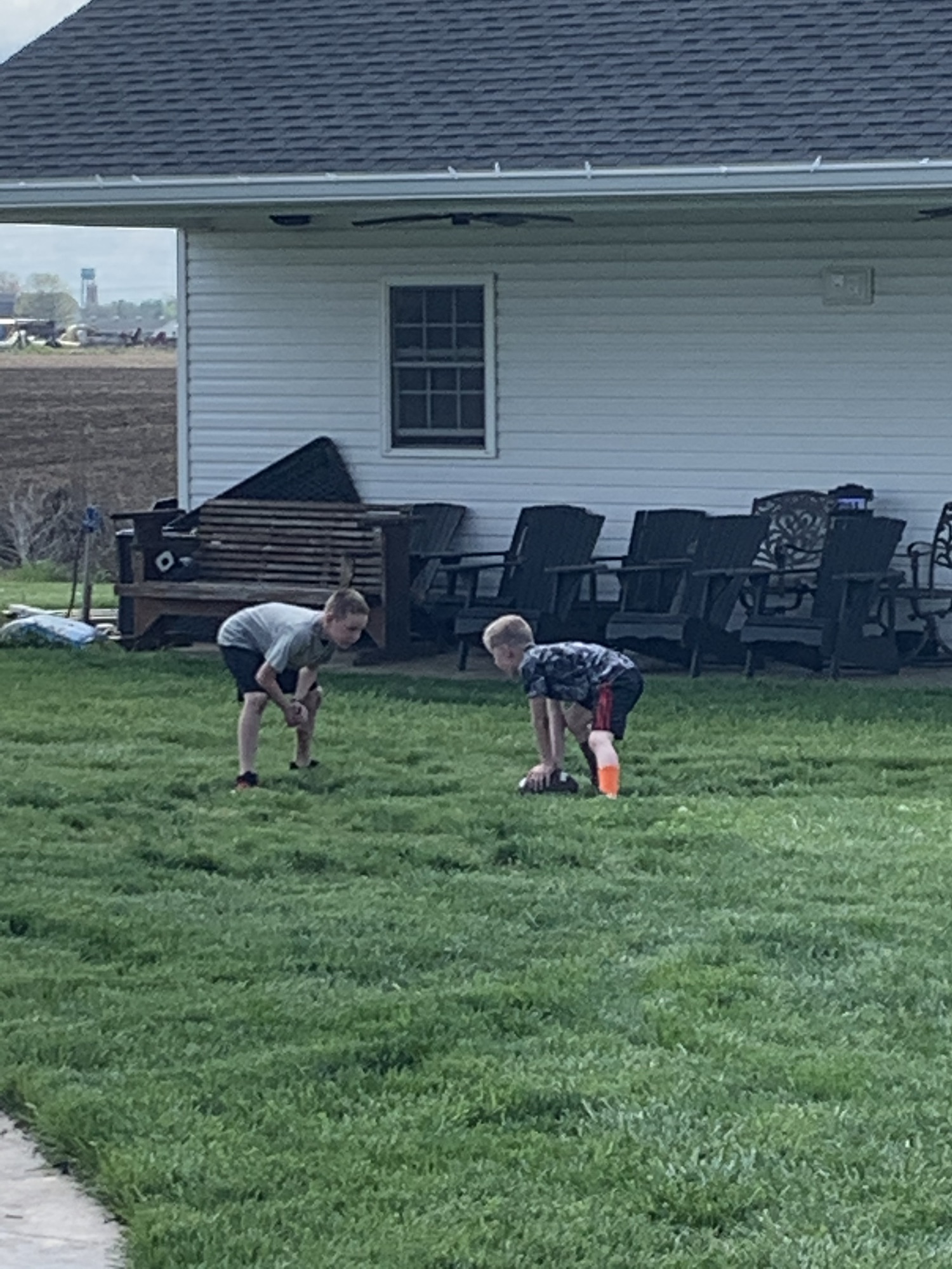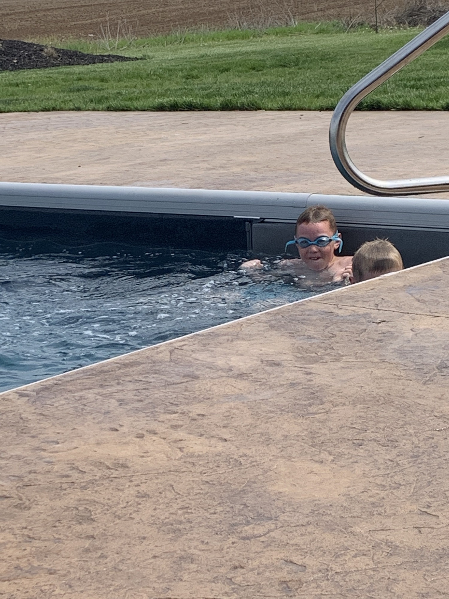 We finished up and ate lunch outside in the sun. Opened the pool and needed to do some cleaning. We spent the afternoon cleaning outdoors and getting some sun. Owen and Corbin played football, Dawson did field maintenance…